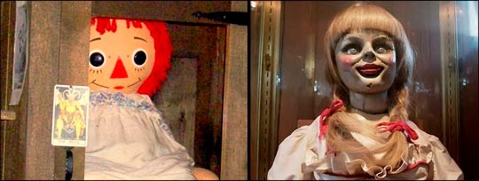 | La muñeca de la izquierda es la verdadera muñeca, la de la derecha es la de la película "El conjuro" basada en la leyenda de Annabell |